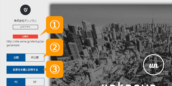 ページを公開状態に切り替えると、本番ページへ反映されます。